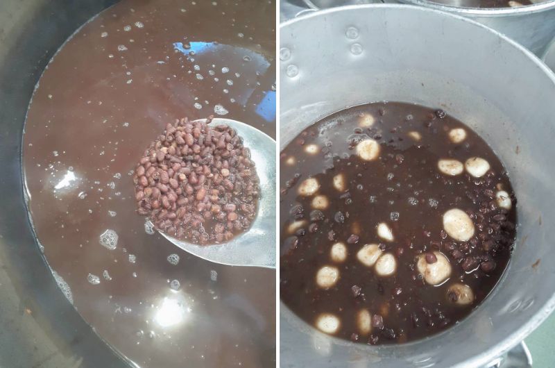 3学期の給食初日、白玉汁粉を作りました。アズキ12㎏を、丁寧にアクを取りながら煮て、白玉団子は約2,000個作り、モチモチのおいしい白玉汁粉ができました✨